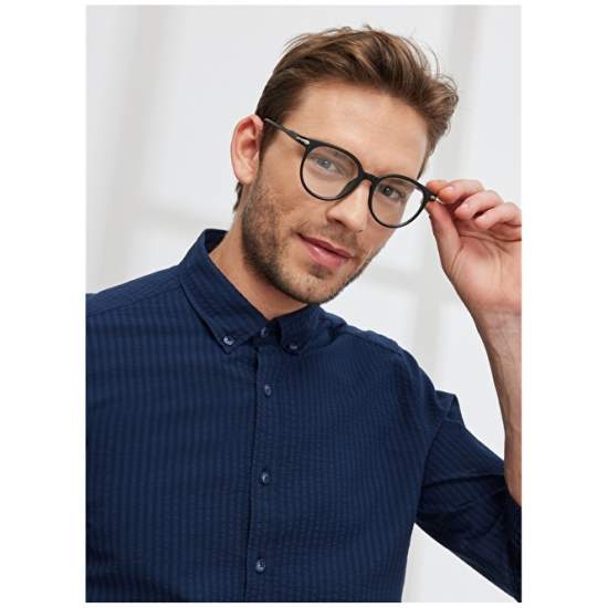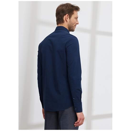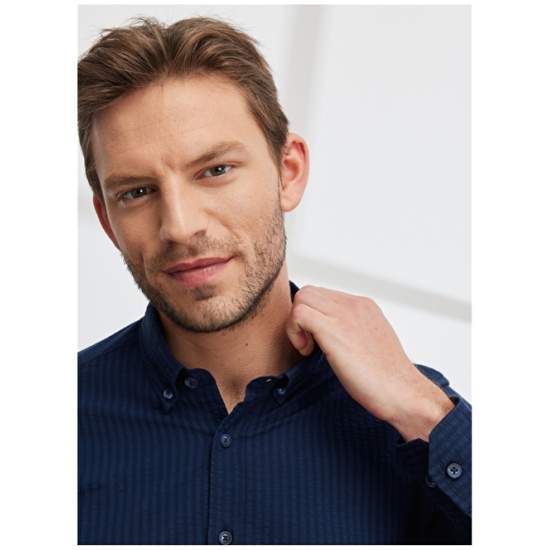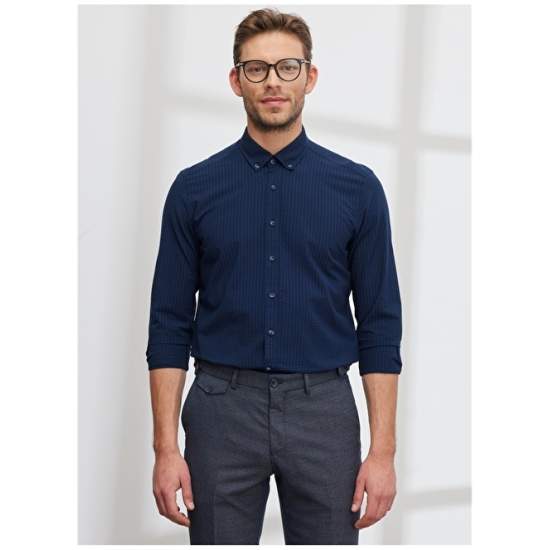 Altınyıldız Classics Buttoned Collar Navy Blue Men's Shirt 4A2023200039