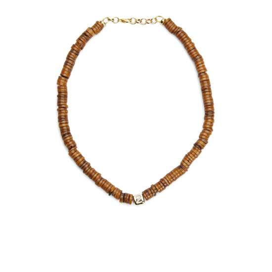 100% Stone; Mother of Pearl Gold Plated Letter; Clip Closure; Beaded Necklace; Length: 42 Cm