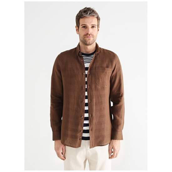 Factory Basic Shirt Collar Plain Brown Men's Shirt MARVIN