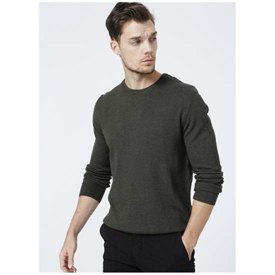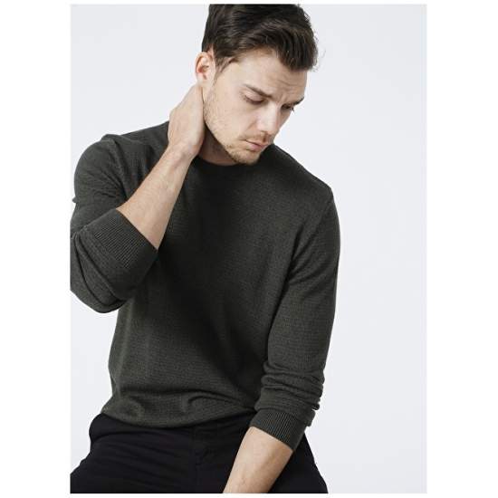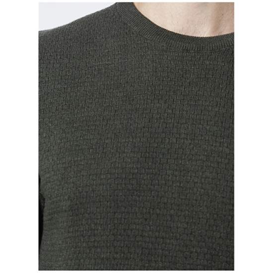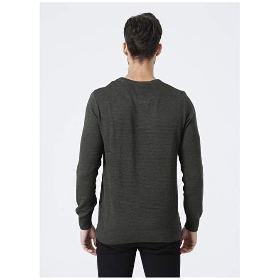 Factory Crew Neck Basic Khaki Melange Men's Sweater - BENJAMIN-Y