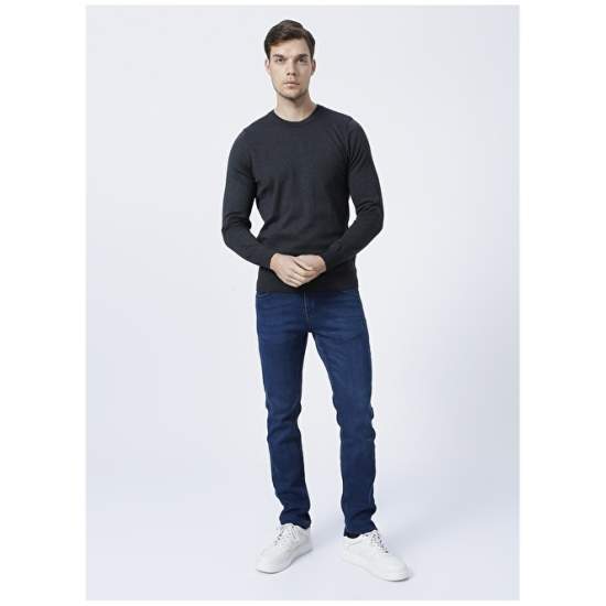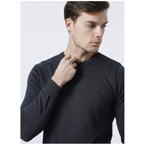 Factory MARCO Crew Neck Basic Plain Anthracite Melange Men's Sweater