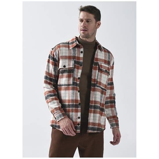 Factory Shirt Collar Plaid Camel Hair Men's Shirt REDONTE