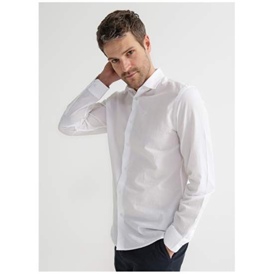 Factory Shirt Collar Plain White Men's Shirt DEM