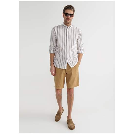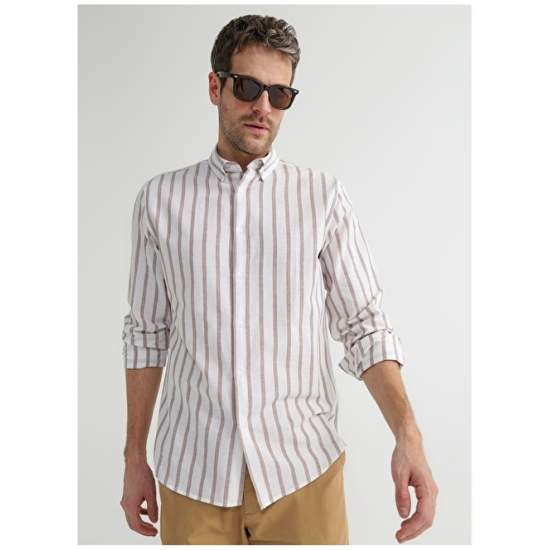 Product Name : Fabrika Shirt Product Detail : Origin : Turkey Pattern Info : Basic Material : 85% Cotton, 15% Linen Model Code : DUTY Sleeve Info : Long Collar Type : Shirt Pattern : Striped