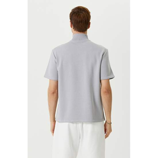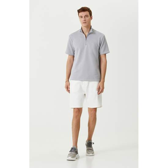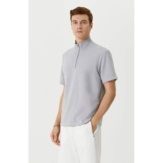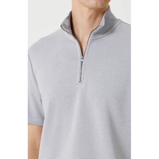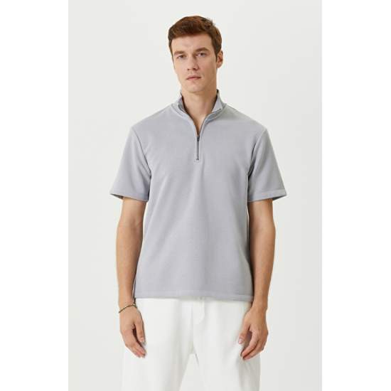 95% Cotton 5% Elastane; Stand Up Collar; Zipper Detailed Sweatshirt