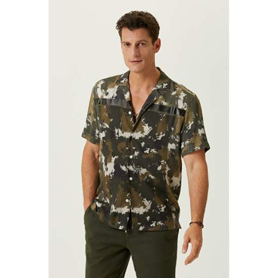 Comfort Fit;Cross Collar;Pocketless;Short Sleeve;Printed