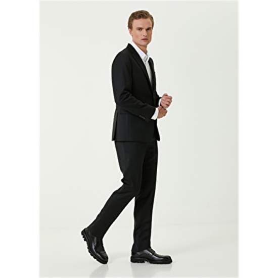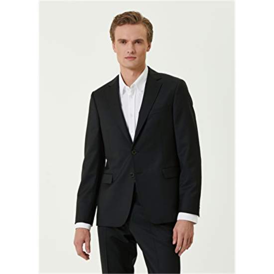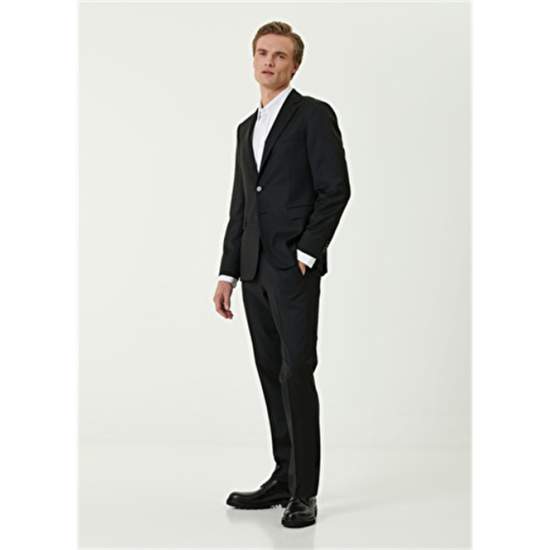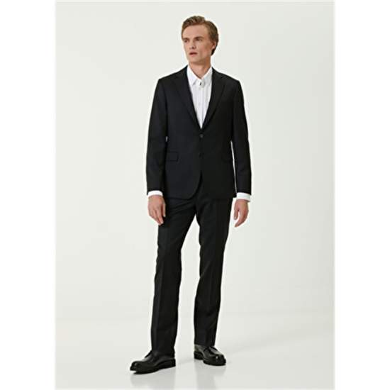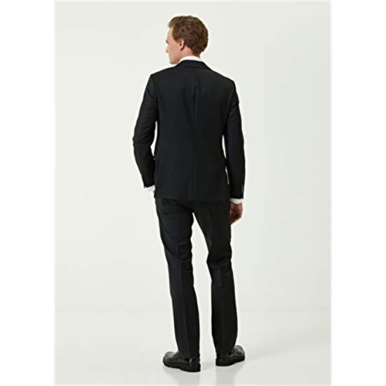 Product Name: 101761296 Men's Black Suit Product Detail: 100%Wool Product Description: Solid Color, Wool Suit. Jacket: Butterfly Collar, Button Closure, Double Slit, Lined, Bird Detail Under Collar, 3 Outer Pockets, 3 Inner Pockets. Trousers: Normal Waist, Slim Leg, 4 Pockets. Product Size: 48 / Model Size: Height: 190 Cm- Bust: 96 Cm - Waist: 81 Cm - Hips: 93 Cm.