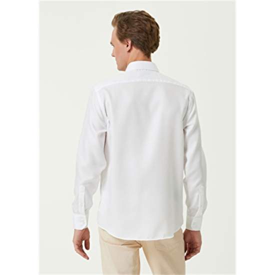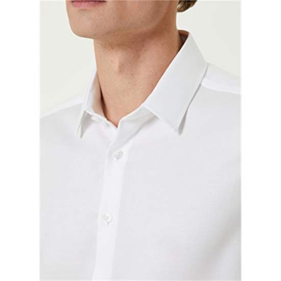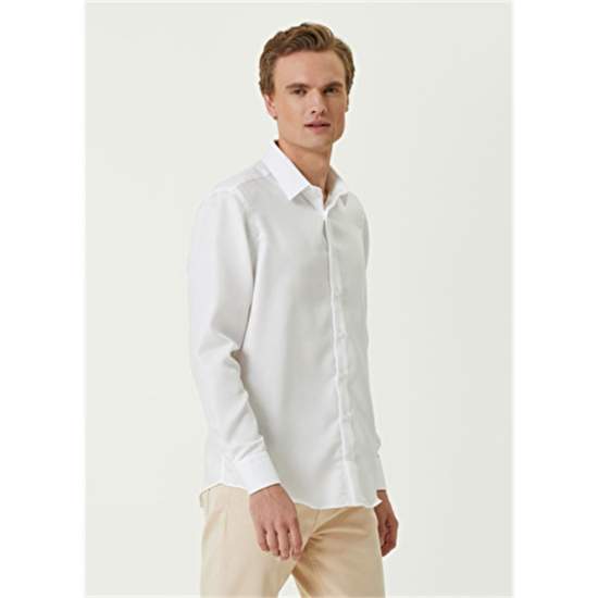 Product Name: 101794949 Men's White Shirt Product Detail: 100%Cotton Product Description: Classic Collar, Button Closure Shirt. Solid Color, Angled Cuff. Dobby, Non-Iron Feature. It is Produced from Self Jacquard Woven Fabric. Product Size: M / Model Size: Height: 187 Cm - Bust: 90 Cm - Waist: 71 Cm - Hips: 94 Cm.