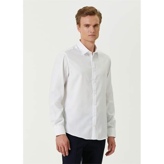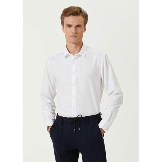 Product Name: 101794955 Men's White Shirt Product Detail: 100% Cotton Product Description: Classic Collar, Button Closure, Oxford Shirt. Solid Color, Angled Cuff. Non-Iron Featured. Product Size: M / Model Size: Height: 187Cm - Bust: 90 Cm - Waist: 71 Cm - Hips: 94 Cm.