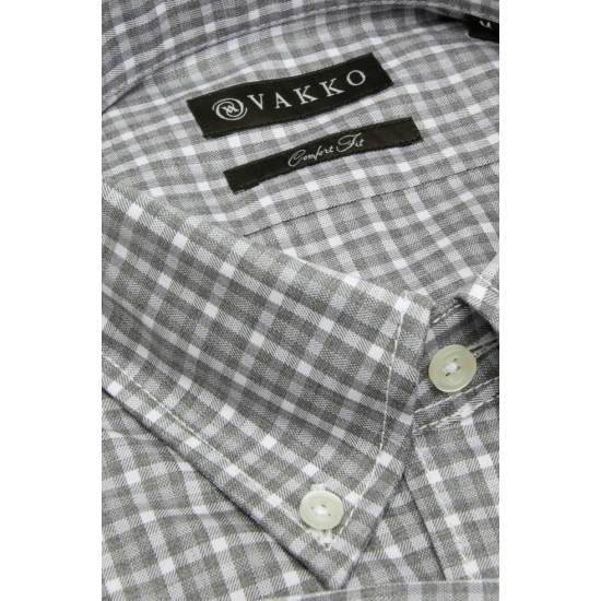 COLOR: Gray PRODUCT ID: M300089102 BRAND: VAKKO PRODUCT GROUP: Shirt FABRIC TYPE: Woven MATERIAL: 100% Cotton LIFESTYLE: Trend MODEL: Box Patterned COLLAR TYPE: Rover Buttoned SLEEVE TYPE: Long Sleeve CUT TYPE: Comfort CLOSE: Silver