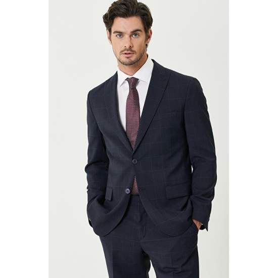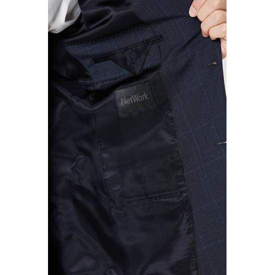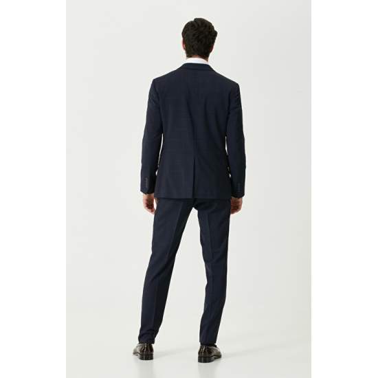 Navy Blue Checked Suit