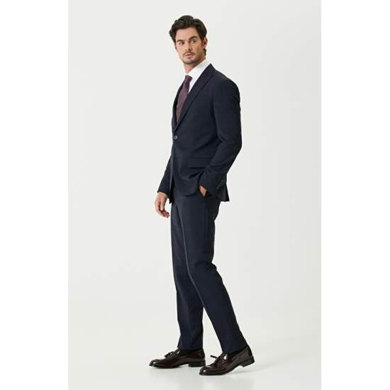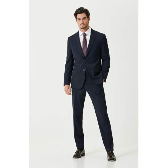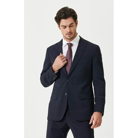 54% Polyester 44% Wool 2% Elastane; Slim Fit; Plaid Patterned Suit; Jacket: Pilapel Collar; Button Closure; 3 Exterior Pockets; 1 Inner Pocket; Pants: Regular Waist; Zipper Closure; Straight Leg; 4 Pockets