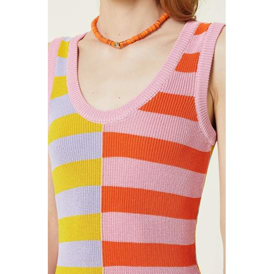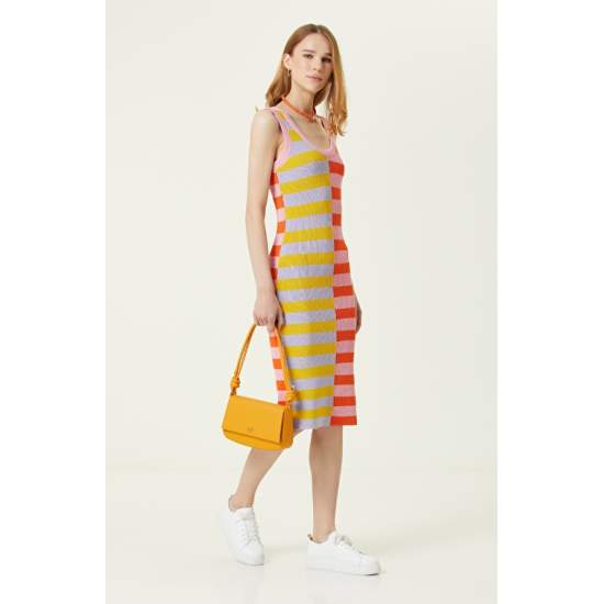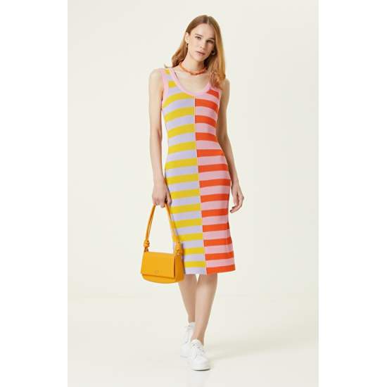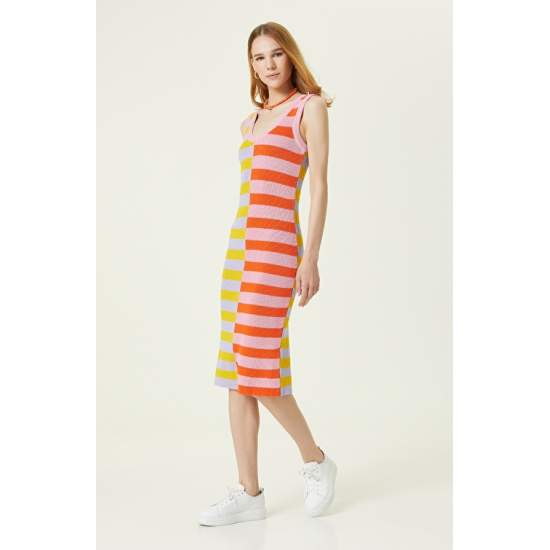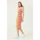 65% Viscose 35% Polyamide;U Neck;Striped;Maxi Dress