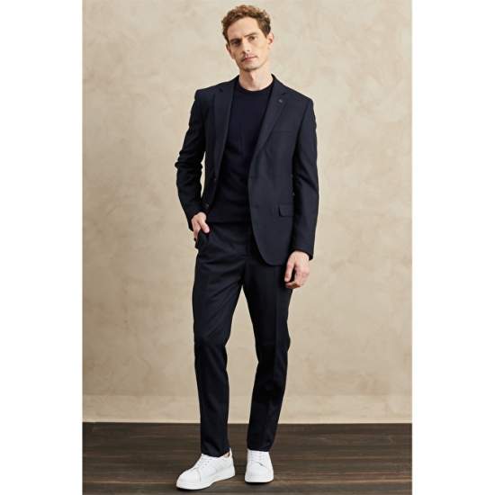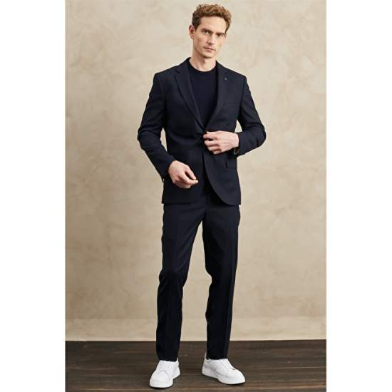 Product Name : 4A3022200080 Regular Fit Relaxed Cut Mon Product Detail : 63% Polyester, 34% Viscose, 3% Elastane, Dobby Navy Blue, Mono Collar, Regular Fit, Long Sleeve, Cover Pocket, Normal Waist, Pipe Leg, Full Lining, Double Slit , Altınyıldız Classics Regular Fit Wide Cut Mono Collar Dobby Suit, Product Size: 48-6 Drop, Model Dimensions: Height: 1.89cm, Weight: 80kg, Product Code: 4A3022200080LAC. Washing Instructions: Not Hand Washable. Bleach Can't Be Put. Cannot be dried in the dryer. No Ironing. Sensitive Dry Cleaning Can Be Done.