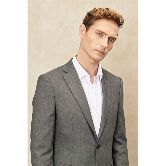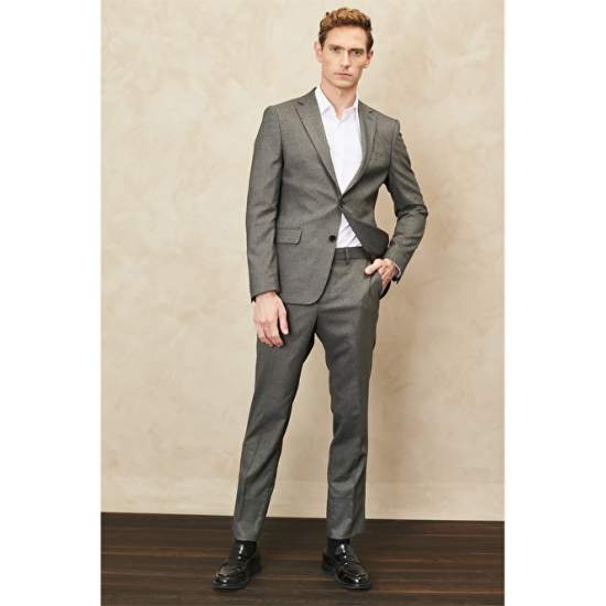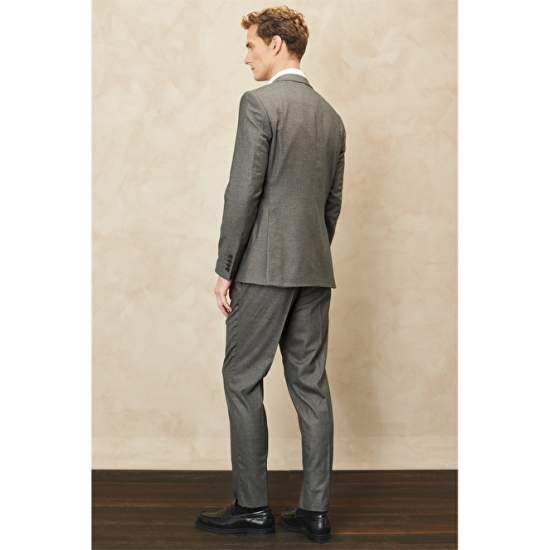 Slim Fit Mono Collar Patterned Wool Suit