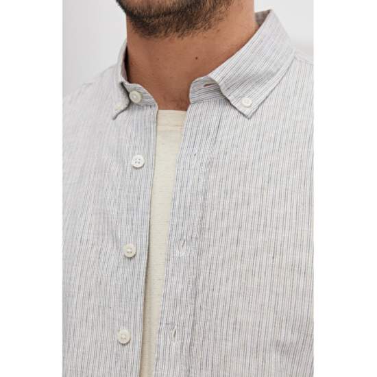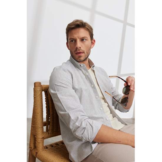 Slim Fit Organic Cotton Striped Linen Shirt