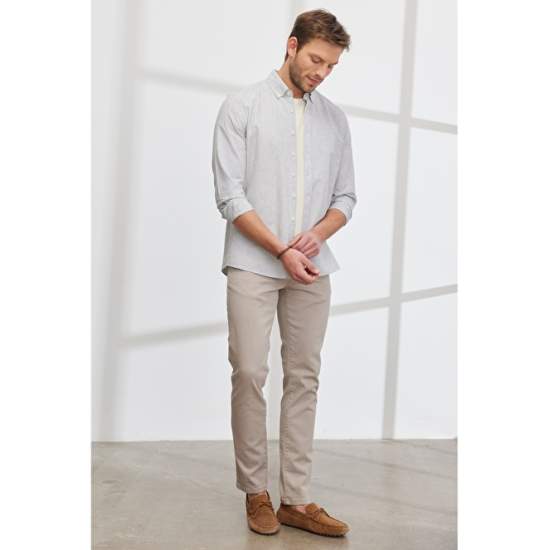 Product Name : 4A2023200007 Slim Fit Slim Fit Buttoned Product Detail : 70% Organic Cotton, 30% Linen, Striped White-Khaki, Slim Fit, Long Sleeve, Buttoned Collar, Summer Collection, No Pocket, Altınyıldız Collection Slim Fit Slim Fit Buttoned Collar Organic Cotton Shirt, Product Size: L, Model Information: Height: 1.89cm, Weight: 80kg, Product Code: 4A2023200007BHK. Washing Instructions: Machine wash water temperature should not exceed 40 degrees. Sensitive Dry Cleaning Can Be Done. No bleach is used. Spread it dry. It should be ironed at low temperature. It is not squeezed in the centrifugal machine.