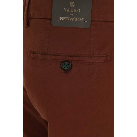 COLOR: Brown PRODUCT ID: M400206915 BRAND: VAKKO BY BERWICH ORIGINAL PRODUCT CODE: MORELLO-TS0440X PRODUCT GROUP: Trousers FABRIC TYPE: Woven MATERIAL: 2% Elastane, 98% Cotton MODEL: Plain diagonal