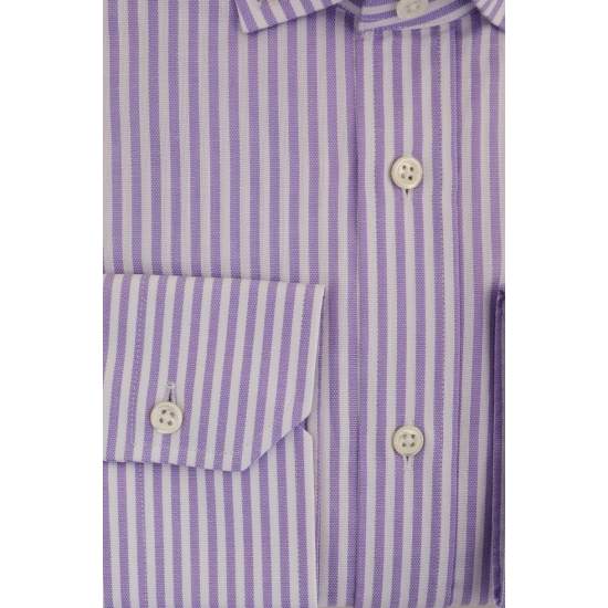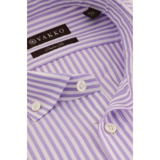 COLOR: Purple PRODUCT ID: M300082307 BRAND: VAKKO PRODUCT GROUP: Shirt FABRIC TYPE: Woven MATERIAL: 100% Cotton LIFESTYLE: Contemporary MODEL: Striped Patterned COLLAR TYPE: Everton Buttoned SLEEVE TYPE: Long Sleeve CUT TYPE: Comfort CLOSE: Silver