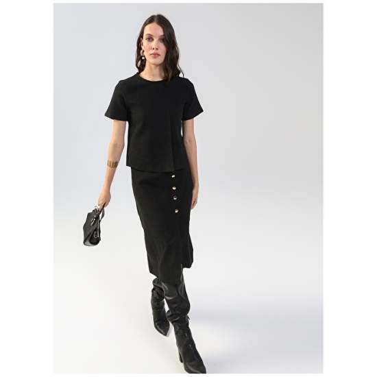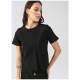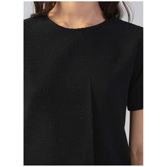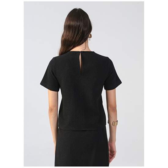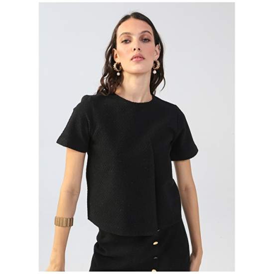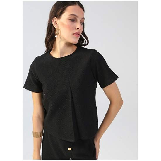 Factory Crew Neck Plain Black Women's Blouse VOLAY
