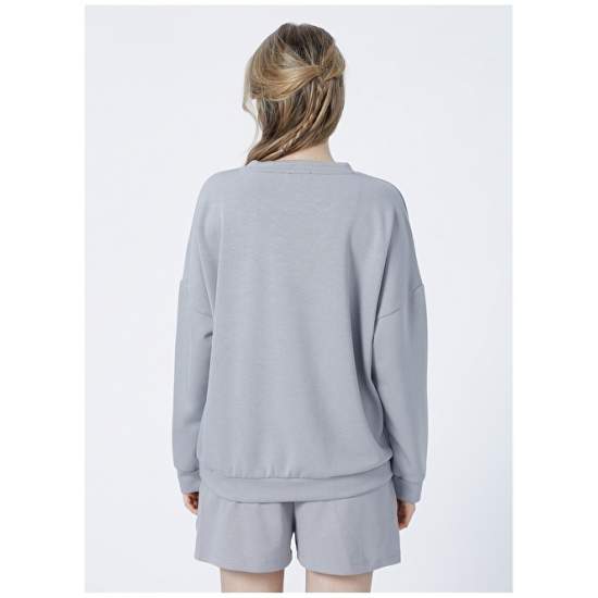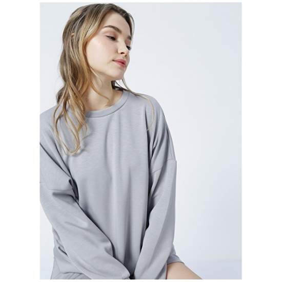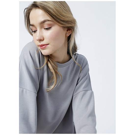 Factory Crew Neck Solid Gray Women's Sweatshirt K-HW-21B19