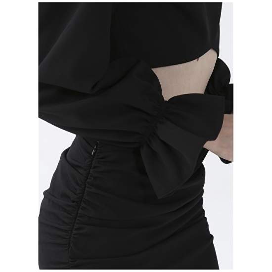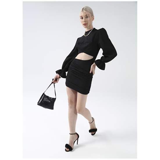 Factory Half Turtleneck Plain Mini Black Women's Dress YMN-14
