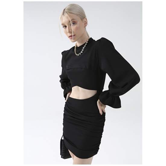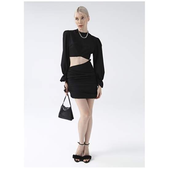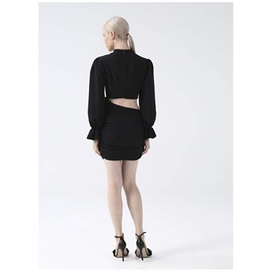Product Name : Factory Dress Product Detail : Material : 95% Polyester, 5% Elastane Pattern : Straight Mannequin Size : Height:1.75 cm / Bust:80 cm / Waist:60 cm / Hip:91 cm Pocket Information : No Pocket Pattern Information : Fitted Sleeve Info : Long Origin : Turkey Model Code : YMN-14 Collar Type : Half Fisherman Length Info : Mini Sample Size : 34