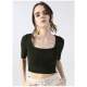 Factory Square Collar Plain Khaki Women's Blouse VALER