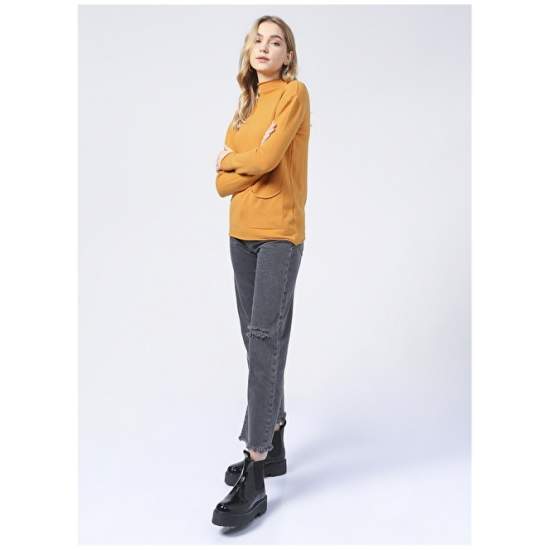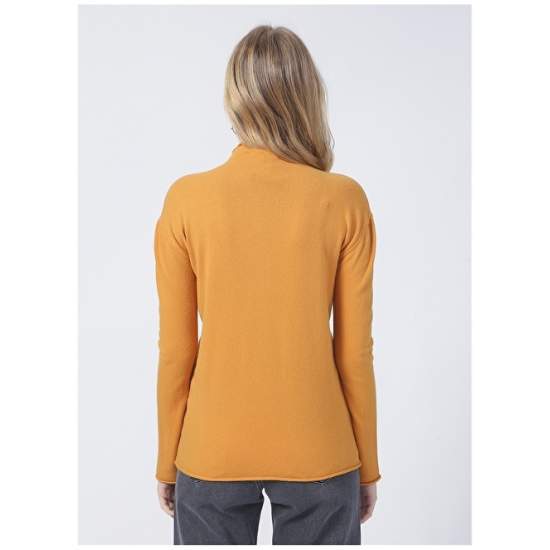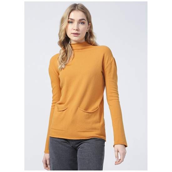 Factory Straight Collar Basic Plain Mustard Women's Sweater - 20267