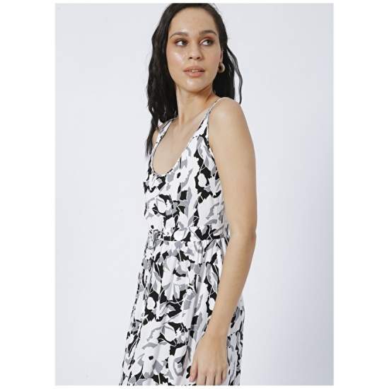 Factory YM-08 U Neck Basic Patterned White - Black Women's Dress