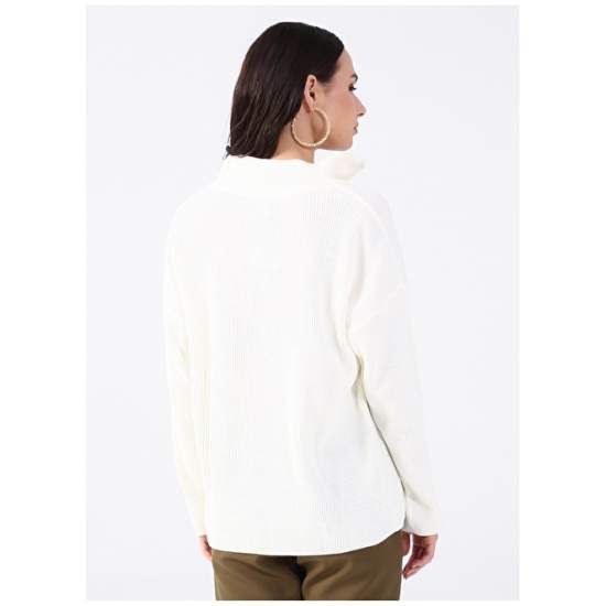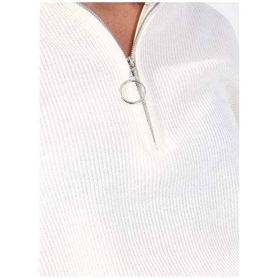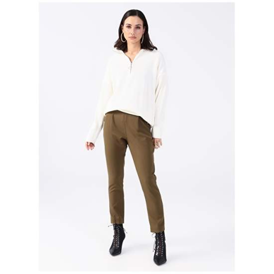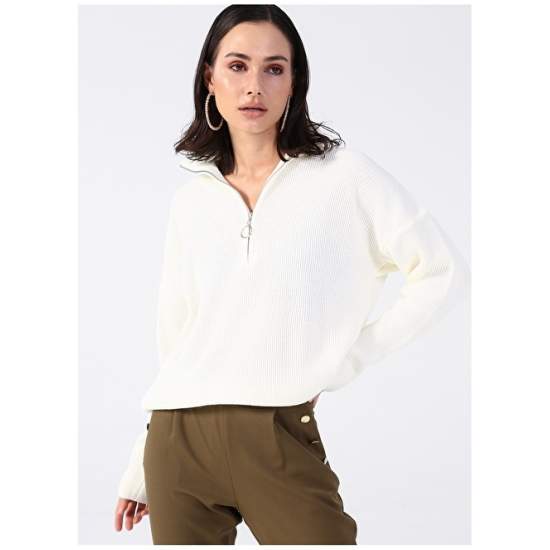 Factory Zippered Collar Plain Ecru Women's Sweater KATTEN
