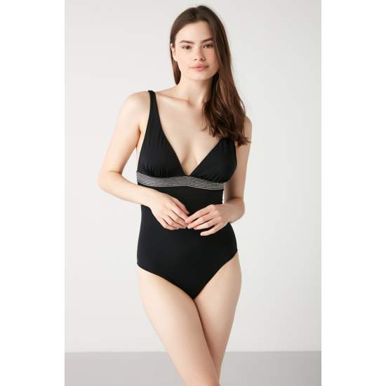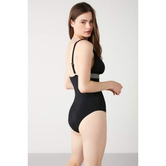 Makpa Elastic Detailed Blue Color Swimsuit