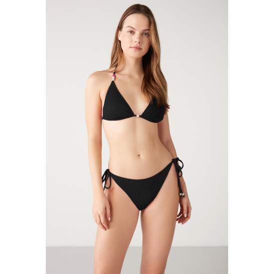 Content: Bikini bottoms and bikini tops Strap: Halter neck Back: Tie-up Underwire: Non-wired Cover condition: Removable thin cup Model: Textured fabric Production: Istanbul, Turkey Fabric: High quality Kom fabric